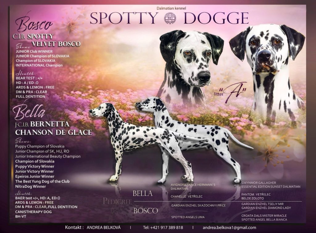 22.06.2025 sa v chovateľskej stanici Spotty Dogge narodilo 10 šteniatok. Z nich sú 4 hnedobodkované a 6 čiernobodkovaných. Vo vrhu je 7 psíkov a 3 sučky.